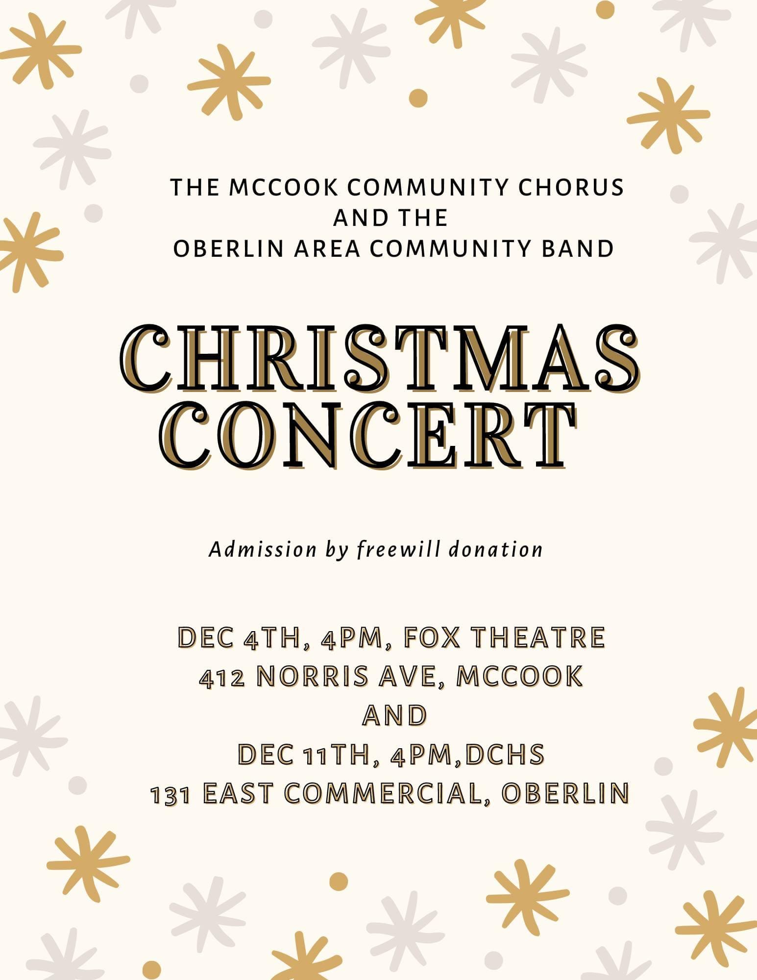 COME ENJOY THE SOUNDS OF CHRISTMAS WITH THE MCCOOK COMMUNITY CHORUS AND THE OBERLIN AREA COMMUNITY BAND