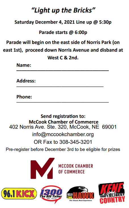 Make plans now to have an entry in this annual event sponsored by High Plains Radio and the McCook Chamber of Commerce. Be Creative and you could be one of the lucky winners. High Plains Radio will be awarding prizes as follows: