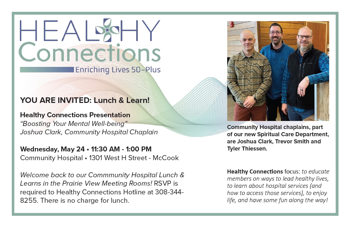 RSVP is required to the Healthy Connections Hotline at 308-344-8255. There is no charge for lunch.
